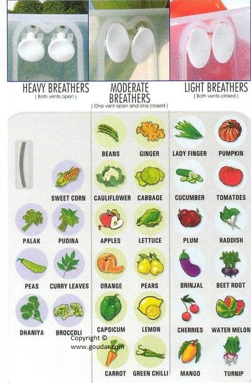 Aération spéciale créée par 2 clapets que l'on ouvre en fonction du fruit et du légume.